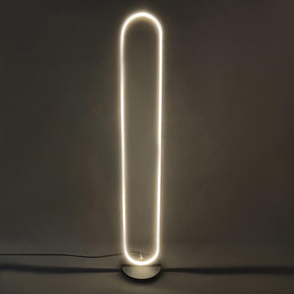 آباژور ایستاده «Loop» — چراغ LED نواری بینهایت (oval loop) — نور گرمِ ملایم، طراحی مینیمال
