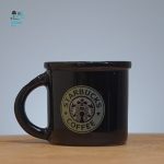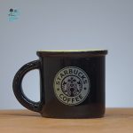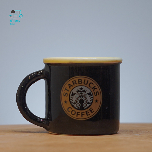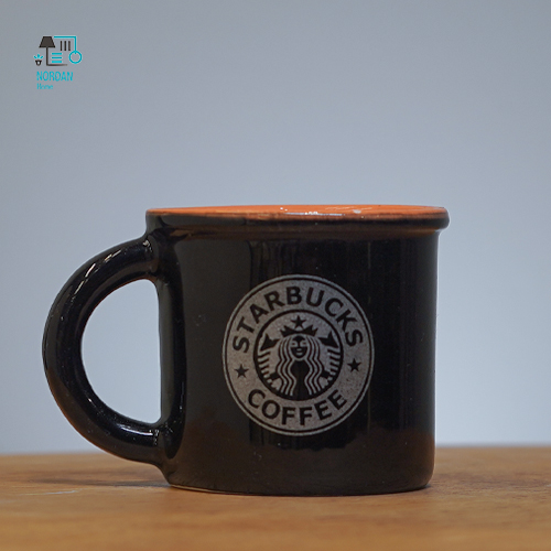 اسپرسو خوری استارباکس این فنجان دارای طراحی ساده و مینیمال است. بدنه اصلی فنجان به رنگ مشکی مات است و لوگوی معروف استارباکس با رنگ روشن (احتمالا سفید یا کرم) بر روی آن چاپ شده است. لبه داخلی فنجان به رنگ نارنجی روشن است که کنتراست زیبایی با رنگ مشکی بدنه ایجاد کرده است. دسته فنجان نیز به رنگ مشکی و همرنگ با بدنه است.
