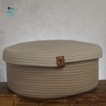 باکس درب‌دار قیطونی یکی از محبوب‌ترین گزینه‌ها برای ایجاد نظم و زیبایی در خانه است. این باکس‌ها با استفاده از نخ‌های بافته شده و محکم تولید می‌شوند و دارای یک درب هستند که به شما امکان می‌دهد وسایل خود را از دید پنهان کرده و فضای خانه را مرتب‌تر نشان دهید.