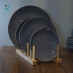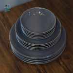 سرویس پذیرایی طوسی براق با سطحی درخشان و طراحی مدرن، چیدمان میز را چشمگیرتر می‌کند. ظروف این سرویس وزن مناسب و لبه‌های خوش‌فرم دارند تا سرو غذا آسان‌تر و سریع‌تر انجام شود.