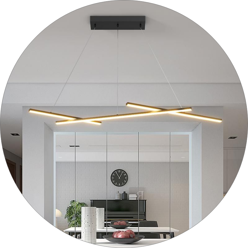 • حتی می‌توان با تنظیم نابرابر آویزها، فرم هنری و پویایی در چیدمان نور ایجاد کرد.