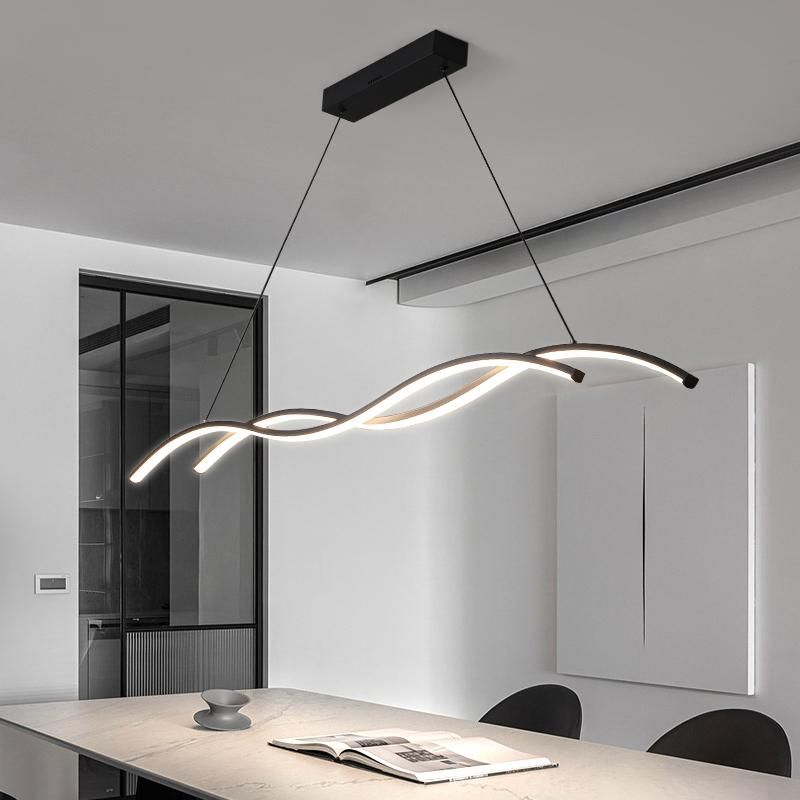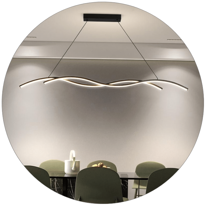 لوستر سقفی خطی طرح سینوسی سایز 130 سانتی با پروفیل های 2 در 1 سانتی میزان نوردهی 70 وات با دو لاین ریسه تراکم 120 گارانتی دو ساله تعویض مناسب برای انواع میز و کانتر بدنه آلومینیومی با پوشش رنگ کورهای رنک نور آفتابی و مهتابی و یخی قابل سفارش در سایز های مختلف ارتفاع از سقف 100 سانتی متر و قابل تنظیم