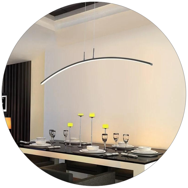این لوستر با ترکیب طراحی مدرن کمانی و نورپردازی حرفهای، فضایی لوکس و متفاوت برای هر محیط ایجاد میکند.