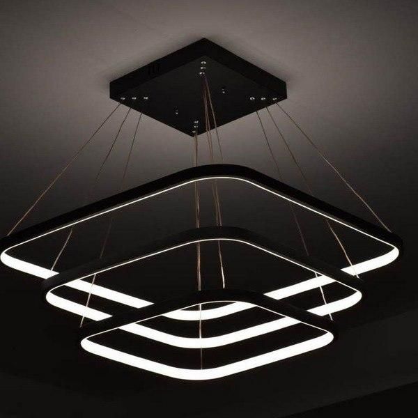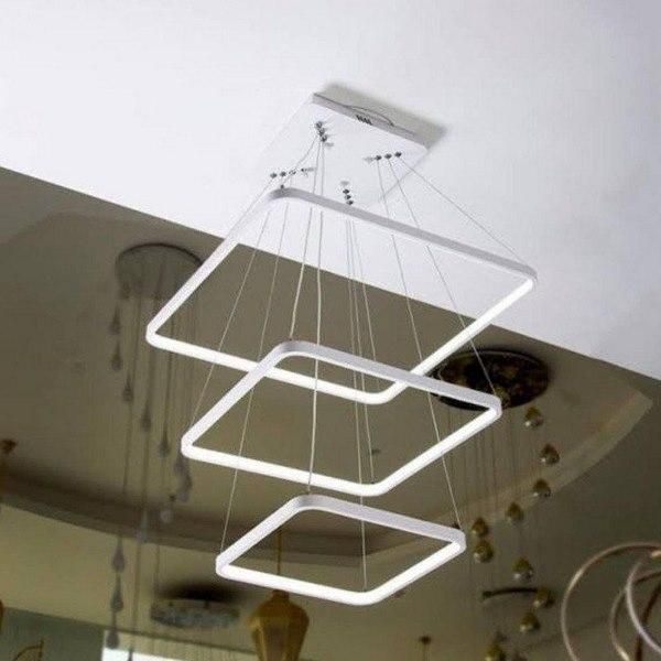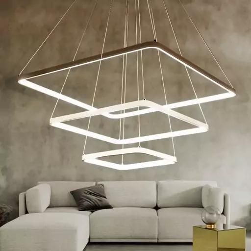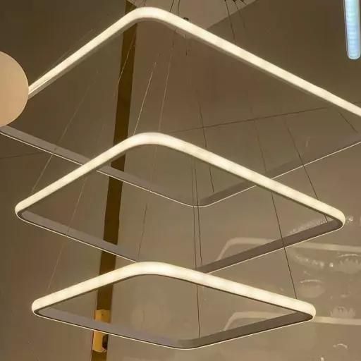 لوستر سقفی طرح مربع ای ۳ طبقه جنس بدنه آلومینیومی و رنگ بدنه رنگ کوره ای درجه یک در سایزهای سی و پنجاه و هفتاد سانتی متر این لوستر در رنگ های سفید و مشکی و طلایی میزان نور دهی ۱۰۰ وات اس ام دی رنگ نور میتوانید آفتابی و مهتابی و یخی سفارش دهید ارتفاع از سقف قابل تنظیم دهنه کار با سیلیکون نسوز بسته میشود