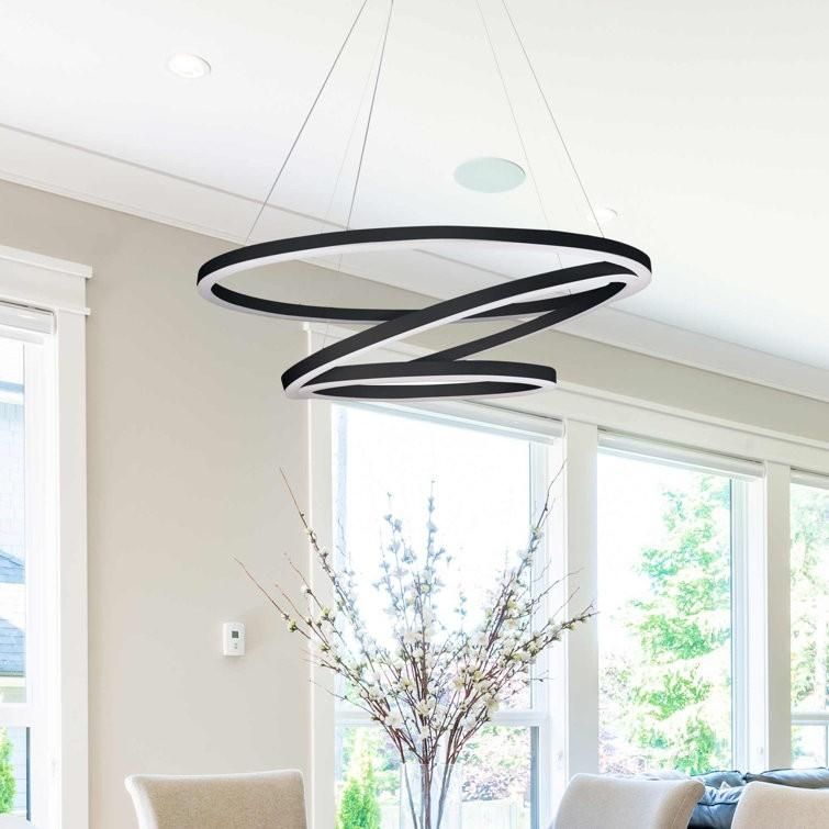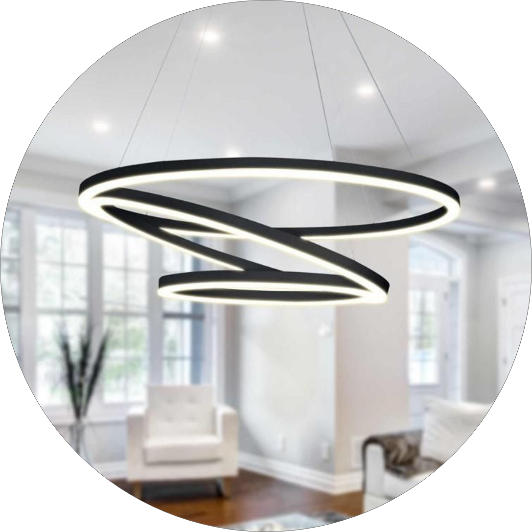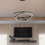لوستر سقفی با طراحی دایرهای ساده، ظاهری مدرن و مینیمالیستی به فضا میبخشد. شکل دایرهای این لامپ، حس هماهنگی و تعادل را به محیط القا میکند. استفاده از رنگ مشکی برای بدنه لامپ، به آن جلوهای شیک و مینیمال بخشیده است.