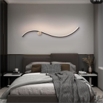 لوستر مدرن دیواری طرح کمان سایز120 سانتیمتر شعاع کمان 25 طرحی بسیار زیبا و خاص مناسب انواع دیوارهای اداری پذیرایی حال اتاق خواب خم شده رو به پایین با پروفیل 2در2 سانت رنگ نور آفتابی نچرال یخی رنگ بدنه سفید مشکی طلایی طوسی ریسه های اس ام دی درایور مقاوم دهنه ار با سیلیکونهای نسوز