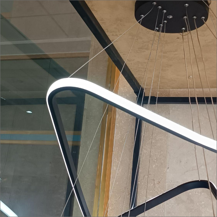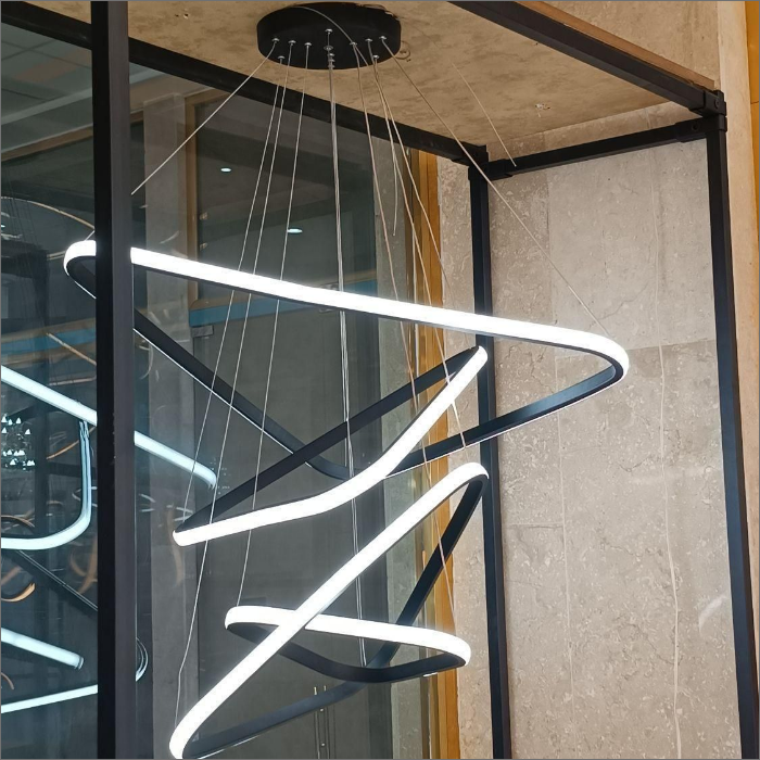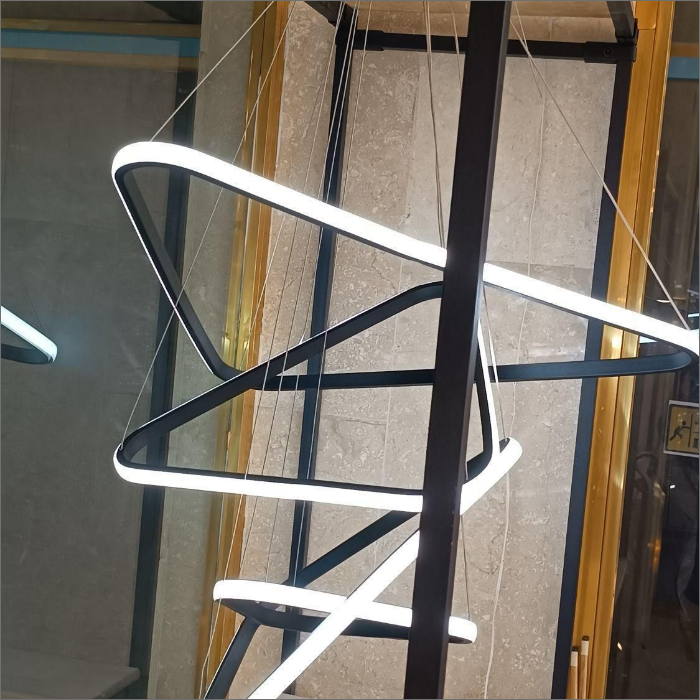 لوستر مدرن سقفی طرح مثلث فضایی 30و50و70سانتی ارتفاع از سقف قابل تنظیم رنگ نور آفتابی مهتابی یخی رنگ بدنه مشکی طلایی کوره ای درجه یک ریسه های اس ام دی درایورهای مقاوم دهنه کار با سیلیکونهای نسوز میباشد