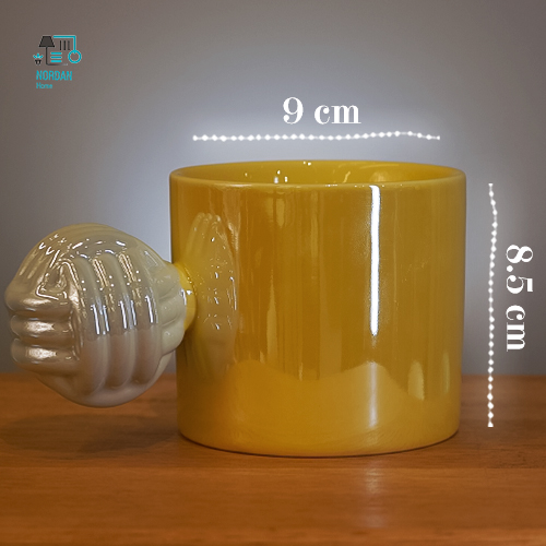 ماگ سرامیکی منحصر به فرد  که دسته آن به شکل یک دست طراحی شده است. بدنه اصلی ماگ به رنگ سبز روشن و دسته آن به رنگ زرد است. این ترکیب رنگی شاداب و جذاب، ظاهری متفاوت و چشم‌نواز به ماگ بخشیده است.