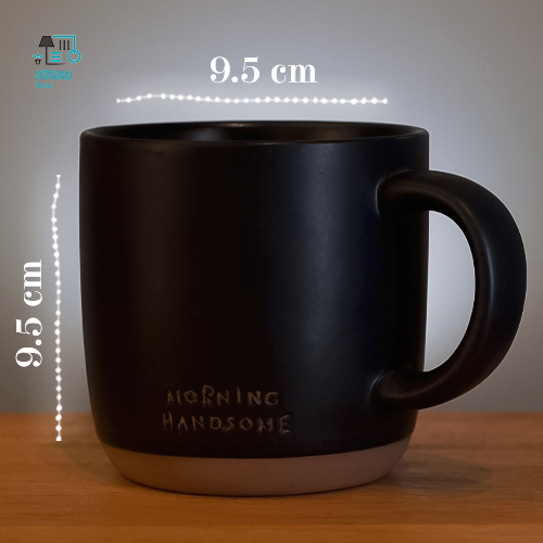 این ماگ دارای طراحی ساده و مینیمال است. بدنه اصلی ماگ به رنگ مشکی مات است و سطح بیرونی آن صاف و بدون هیچ طرح خاصی است. در قسمت پایین فنجان، عبارت “Morning Handsome” (صبح بخیر خوشتیپ) به رنگ سفید نوشته شده است. این عبارت با خطی ساده و خوانا نوشته شده و به ماگ ظاهری شخصی و دوستداشتنی بخشیده است. دسته ماگ نیز به رنگ مشکی و همرنگ با بدنه است و دارای طراحی ساده و ارگونومیک است.