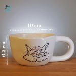 این ماگ دارای بدنهای به رنگ سفید و طرحی ساده و دلنشین است. در قسمت جلوی فنجان، یک فرشته کوچک روی ابر نقاشی شده است. فرشته با چشمان بسته و حالتی آرام روی ابر خوابیده است. دور صورت فرشته، یک تاج گل کوچک قرار دارد که به ماگ ظاهری ظریف و دخترانه میدهد.