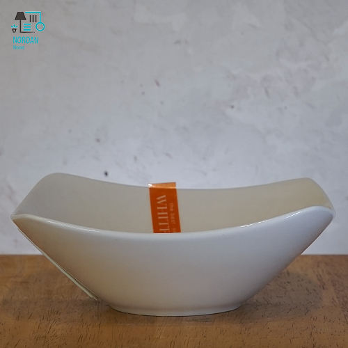 این کاسه دارای طراحی مدرن و مینیمال است. بدنه کاسه صاف و براق بوده و به رنگ سفید است. شکل این کاسه کمی خمیده بوده و کنارههای آن گرد شده است. این کاسه برای سرو انواع سالاد، ماکارونی، برنج و سایر غذاها مناسب است. همچنین میتوان از آن به عنوان ظرف تزئینی برای قرار دادن میوه یا آجیل استفاده کرد.