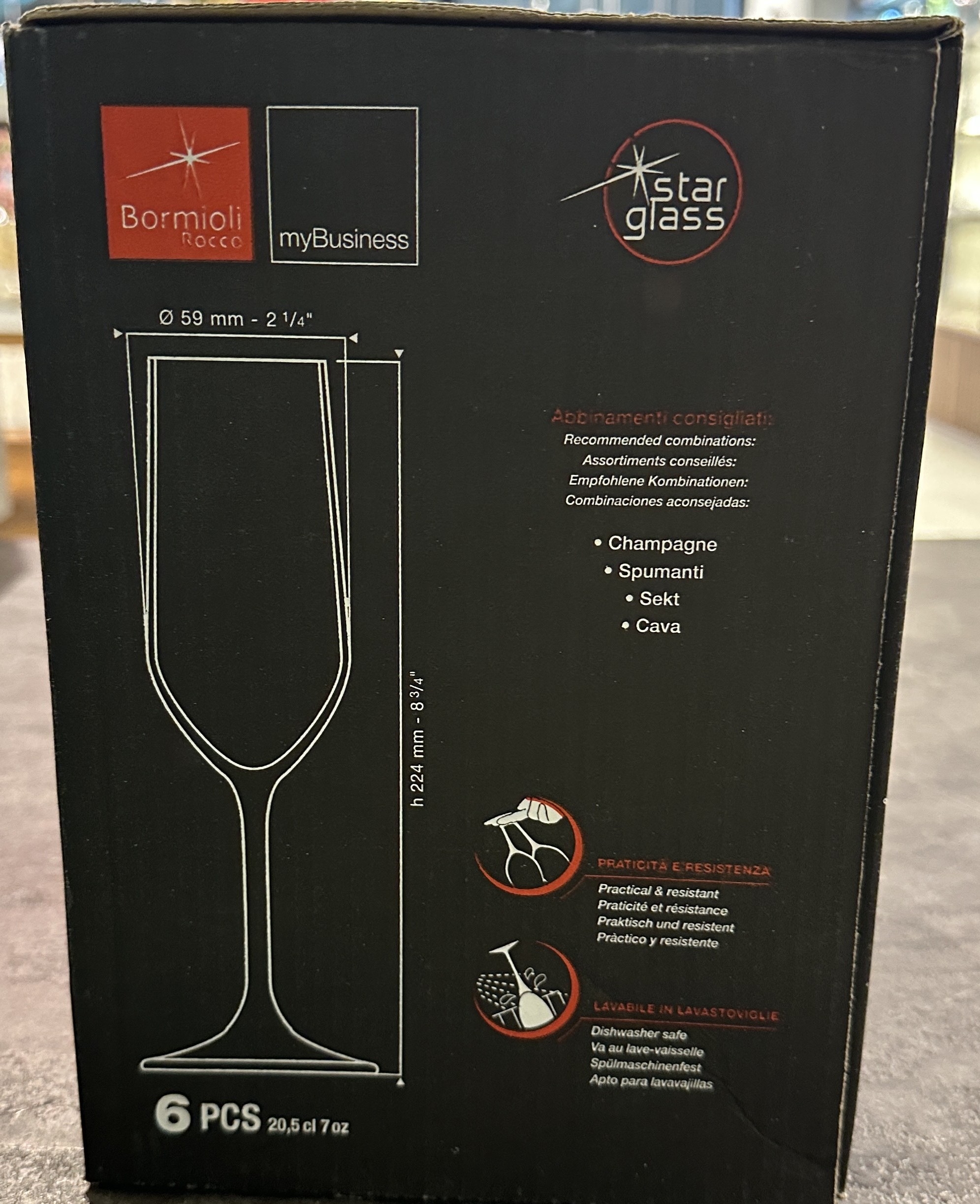 شرکت Bormioli Rocco از شیشه Star Glass برای ساخت این فلوت استفاده کرده است؛ شیشهای فاقد سرب و فلزات سنگین که شفافیت کریستالی دارد، سبک و مقاوم است و امکان شستشو در ماشین ظرفشویی را فراهم میکند. همچنین این شیشه کاملاً قابل بازیافت و ایمن برای استفاده روزانه است.
